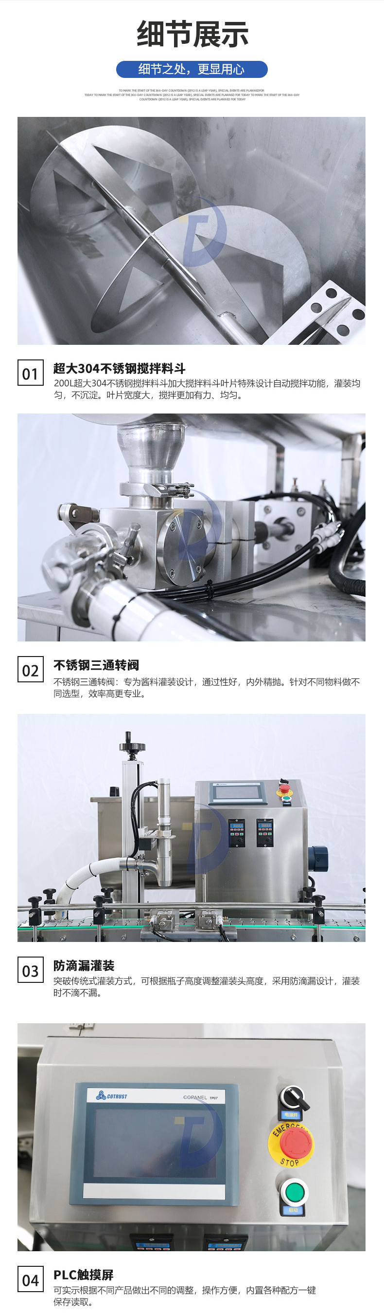 用于辣椒醬、拌面醬、豆排醬、大塊肉醬、油辣醬、 番茄醬、花生醬等醬料的定量充填分裝。