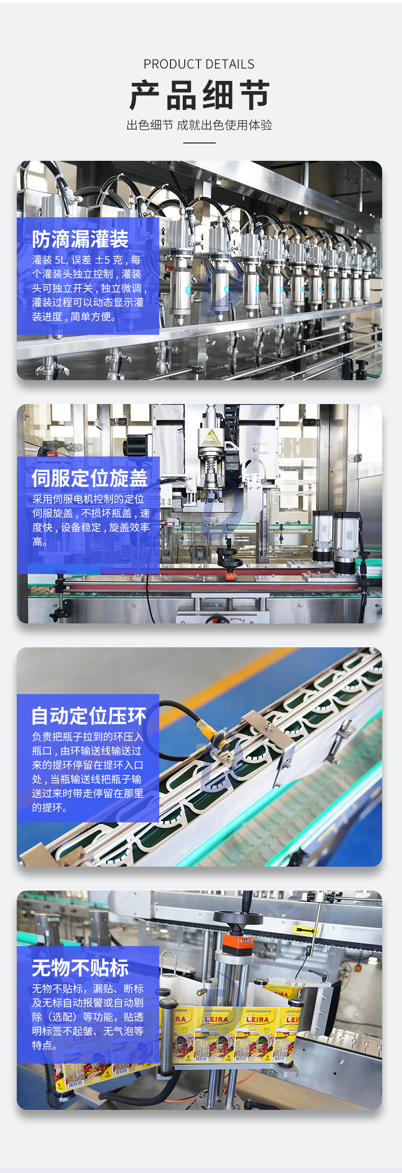 當(dāng)油桶移動到灌裝頭下方時,灌裝頭會自動啟動,開始進(jìn)行自動灌裝。在這個過程中,灌裝頭會感應(yīng)油桶的存在,并根據(jù)設(shè)定好的參數(shù)自動進(jìn)行灌裝。當(dāng)油桶已經(jīng)達(dá)到預(yù)定容量后,灌裝頭會自動關(guān)閉,停止灌裝。